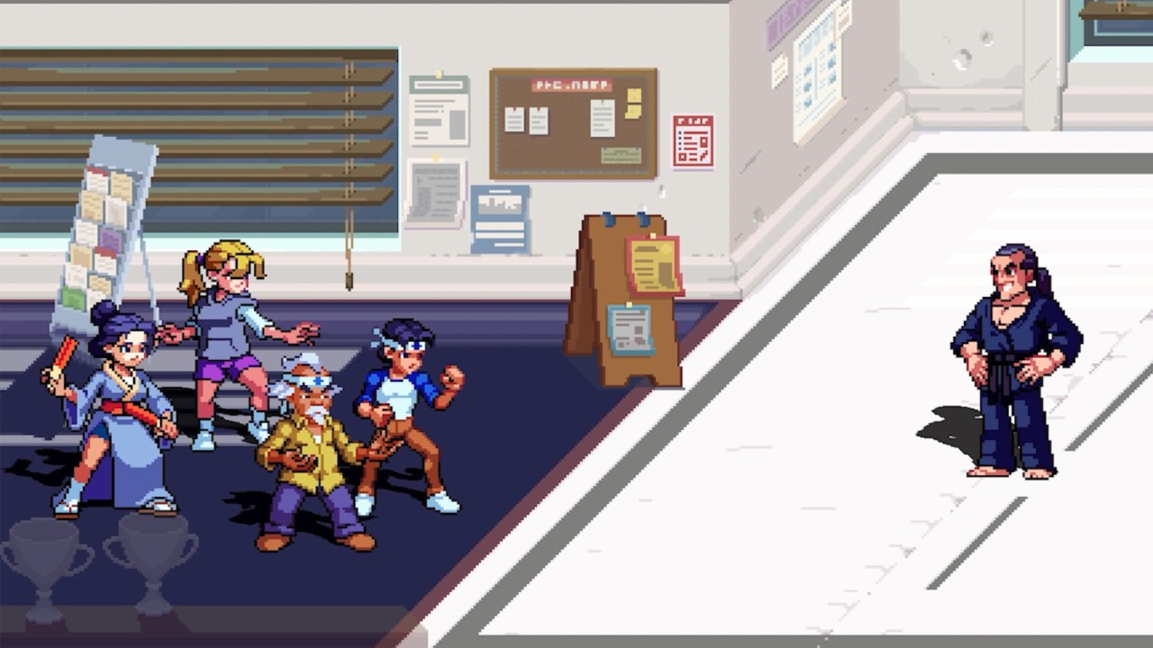 Traversing the iconic locations of the first three classic 1980s Karate Kid films, you'll step out of the dojo and onto the streets of West Valley and Okinawa as you battle waves of enemies in this beat 'em up, side- scrolling and pixel art.