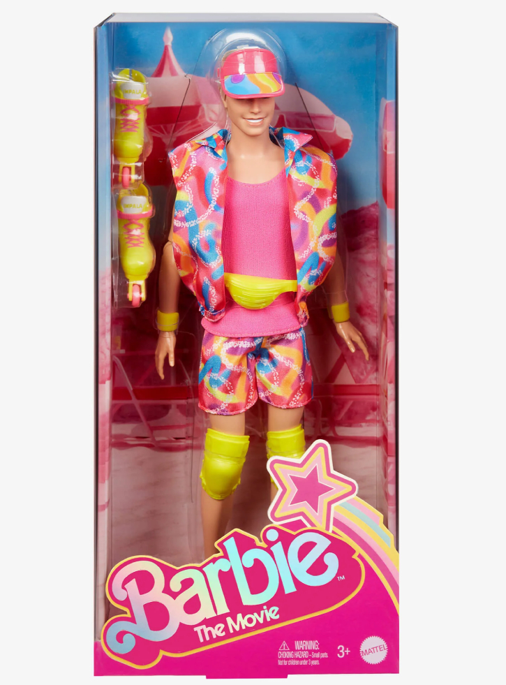 Salutări din Țara lui Barbie! Această păpușă de colecție Ken patineaza într-o ținută retro, desprinsă direct din filmul Barbie The Movie.