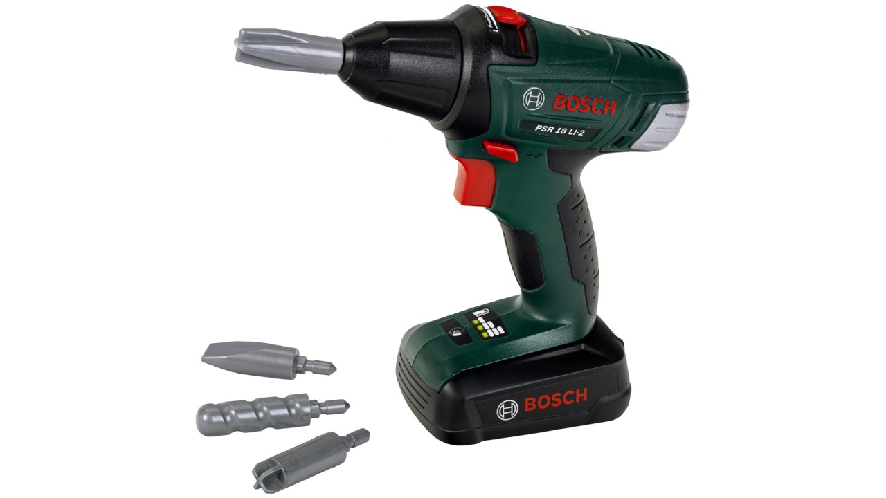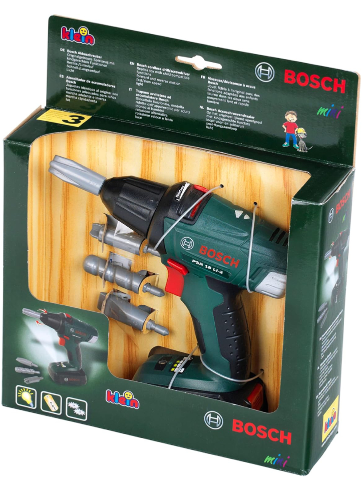 Șurubelnița fără fir de jucărie cu design Bosch are funcții prietenoase pentru copii.