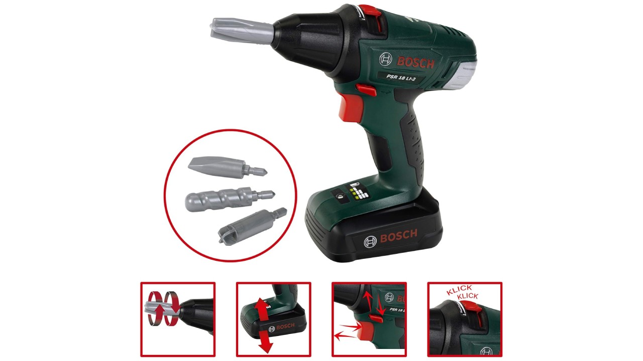 It contains everything the young craftsman could need: hammer, saw, adjustable wrench, toy nails and wood strips, screws and nuts.
