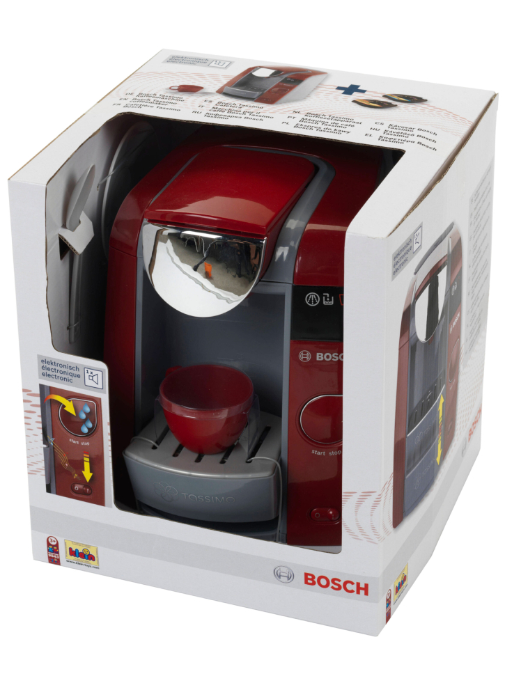 Poate fi umplută cu apă care curge prin mașină; este o replică exactă a unui design original Bosch, dar complet sigură, deoarece nu încălzește deloc apa. Este livrat cu un set de espresso și două doze de cafea.
