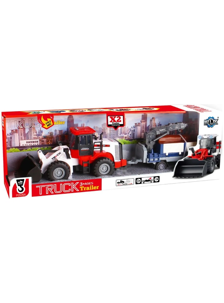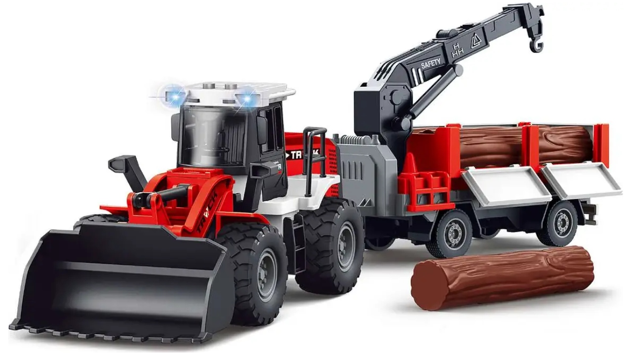 Equipped with a front bucket and a detachable trailer, this set is ready to tackle any jobsite imaginable. The trailer is a marvel in itself, featuring a crane and three sturdy logs, allowing little ones to practice their loading and unloading skills.