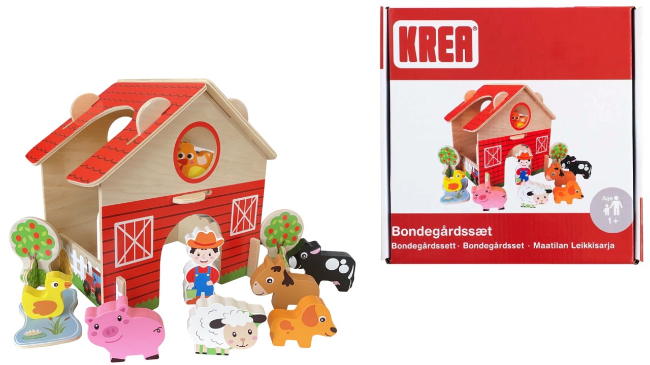 Setul Krea oferă multe ore de joacă cu figurina de animale și un fermier care se potrivesc cu hambarul roșu.