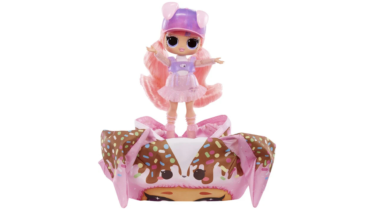 Desfă catifeaua din spatele capului cățelușului pentru a descoperi superba păpușă Tweens Ali Dance ascunsă în interior.