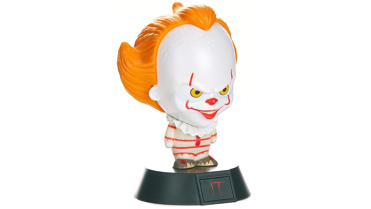 Ideal for fans of Stephen King's IT novel and its film adaptations, this lamp features a cartoon figure of Pennywise the clown on a black base with the IT logo on the front.