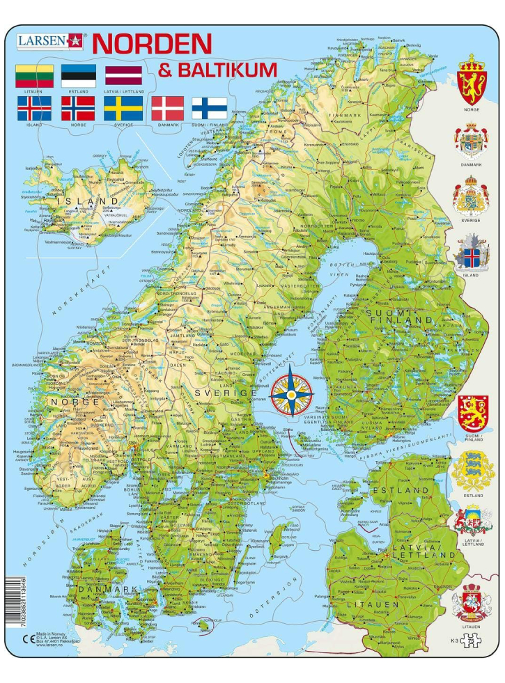 Acest puzzle cu harta politică a țărilor nordice și baltice prezintă cele 8 țări europene care se unesc și cooperează în mod informal.
