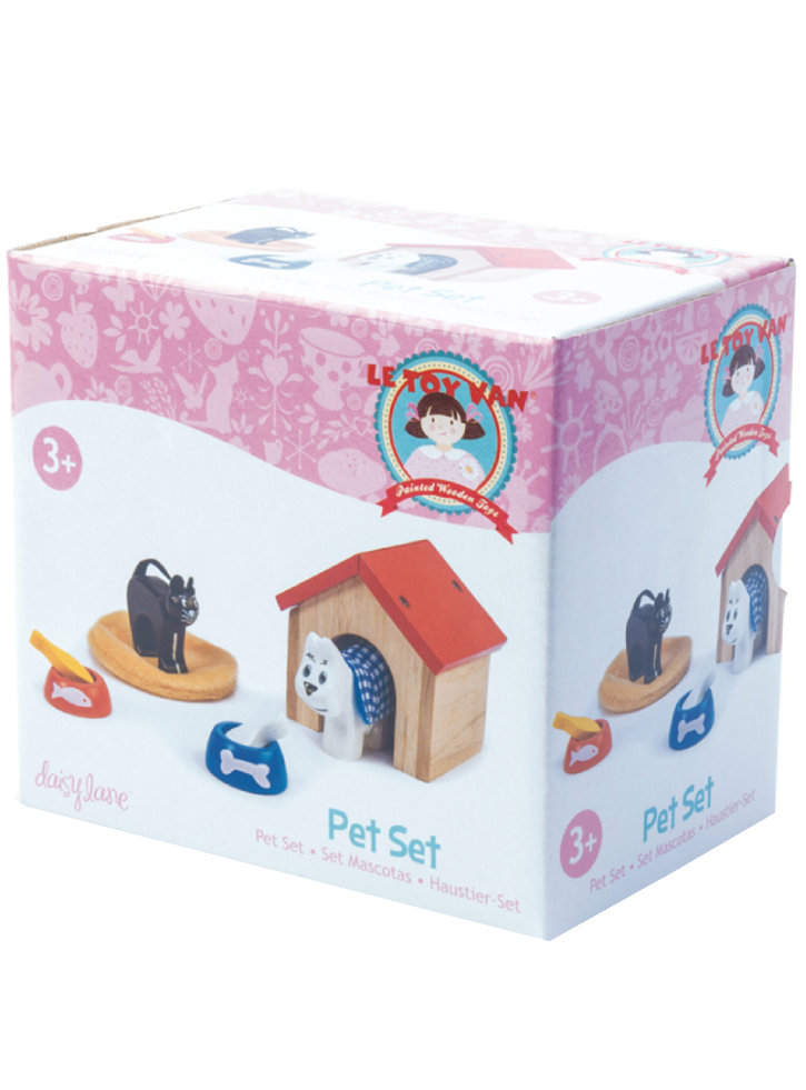 Completează-ți casa cu setul pentru animale de companie de la Le Toy Van. Acest set unic conține animale de companie din lemn vopsit, care includ un câine jucărie și o pisică jucărie, alături de accesorii speciale pentru ele. Accesoriile includ o cușcă confortabilă pentru câine, un adorabil pat pentru pisică și câte un castron pentru fiecare animal, cu un delicios os pentru câine. Setul este creat special pentru a se potrivi cu gama noastră extinsă de case de păpuși Le Toy Van. Acest set de animale de companie deosebite va aduce un plus de distracție și joc imaginativ în lumea păpușilor tale.