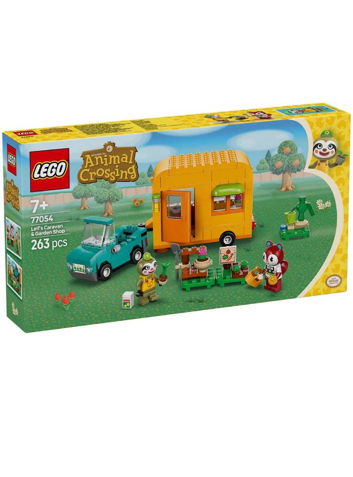 Cadoul LEGO Animal Crossing Leif's Caravan & Garden Shop (77054) pentru copii vine cu 2 minifigurine, o mașină și o rulotă de jucărie și un magazin de grădină pentru ore întregi de joacă imaginativă.