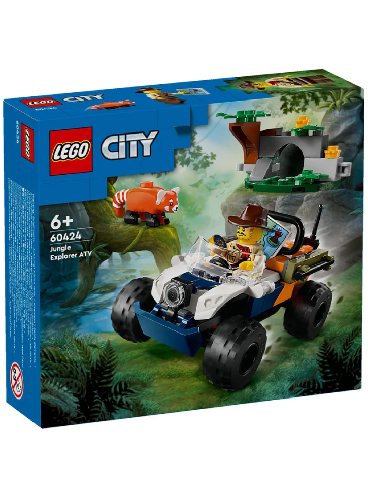 Răsfață-ți entuziastul în devenire al faunei sălbatice cu vehiculul de jucărie LEGO City Jungle Explorer ATV Red Panda Mission (60424).