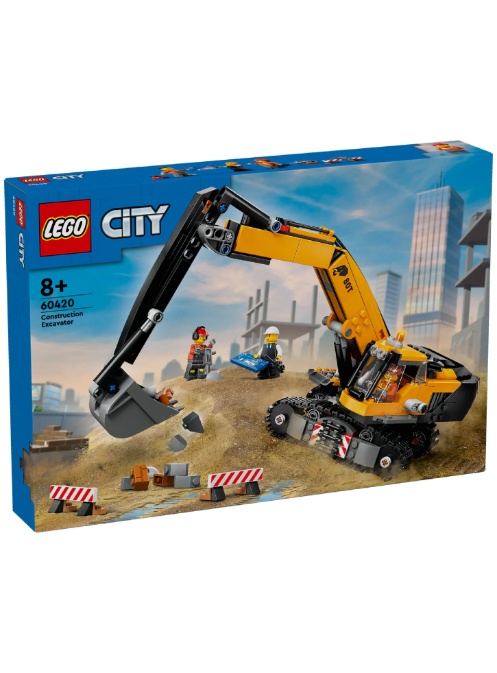 Surprinde-ți constructorul în devenire cu jucăria LEGO City Yellow Construction Excavator (60420) pentru copii.