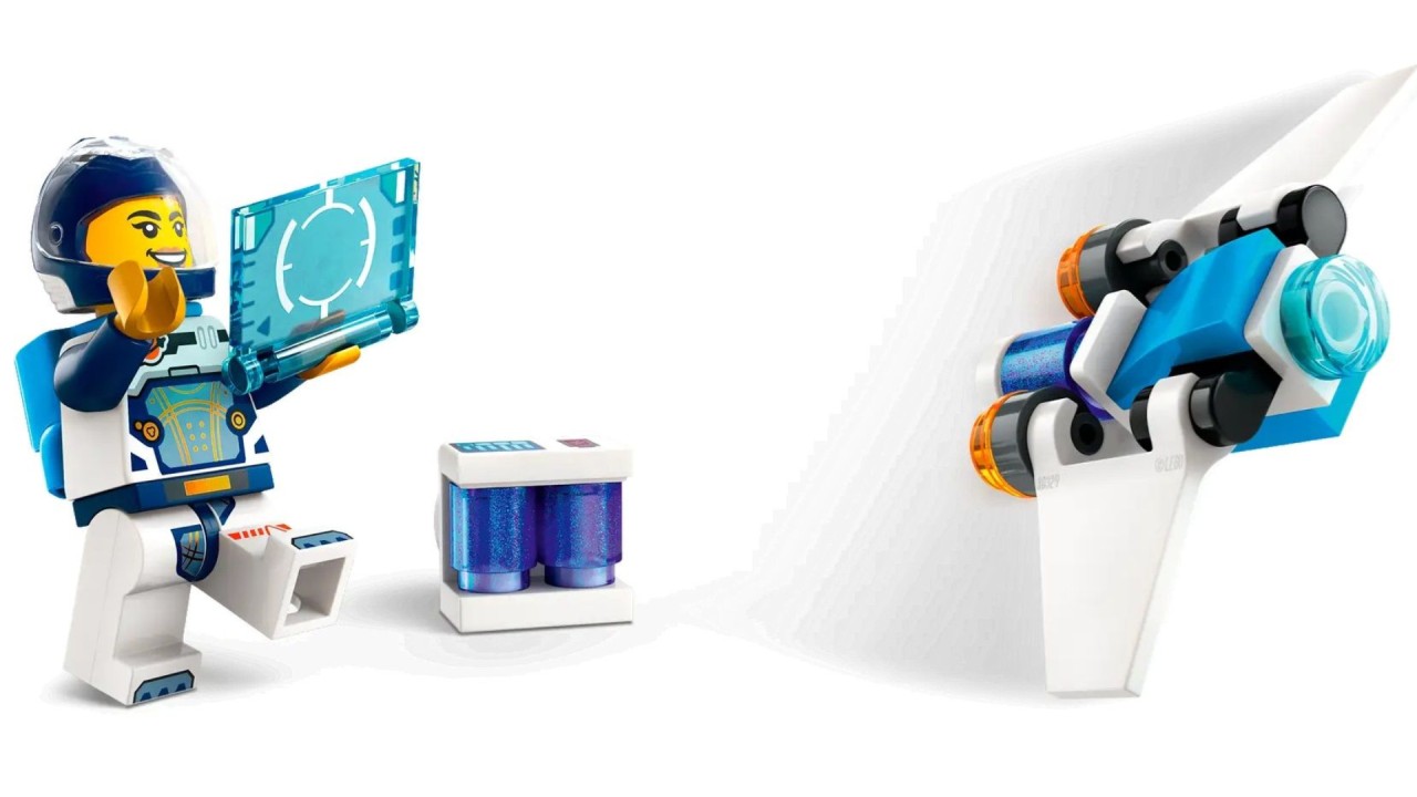 Această navă spațială cu un singur loc este proiectată să atingă viteze amețitoare. Setul include și o dronă robotică care se transformă într-un jetpack.