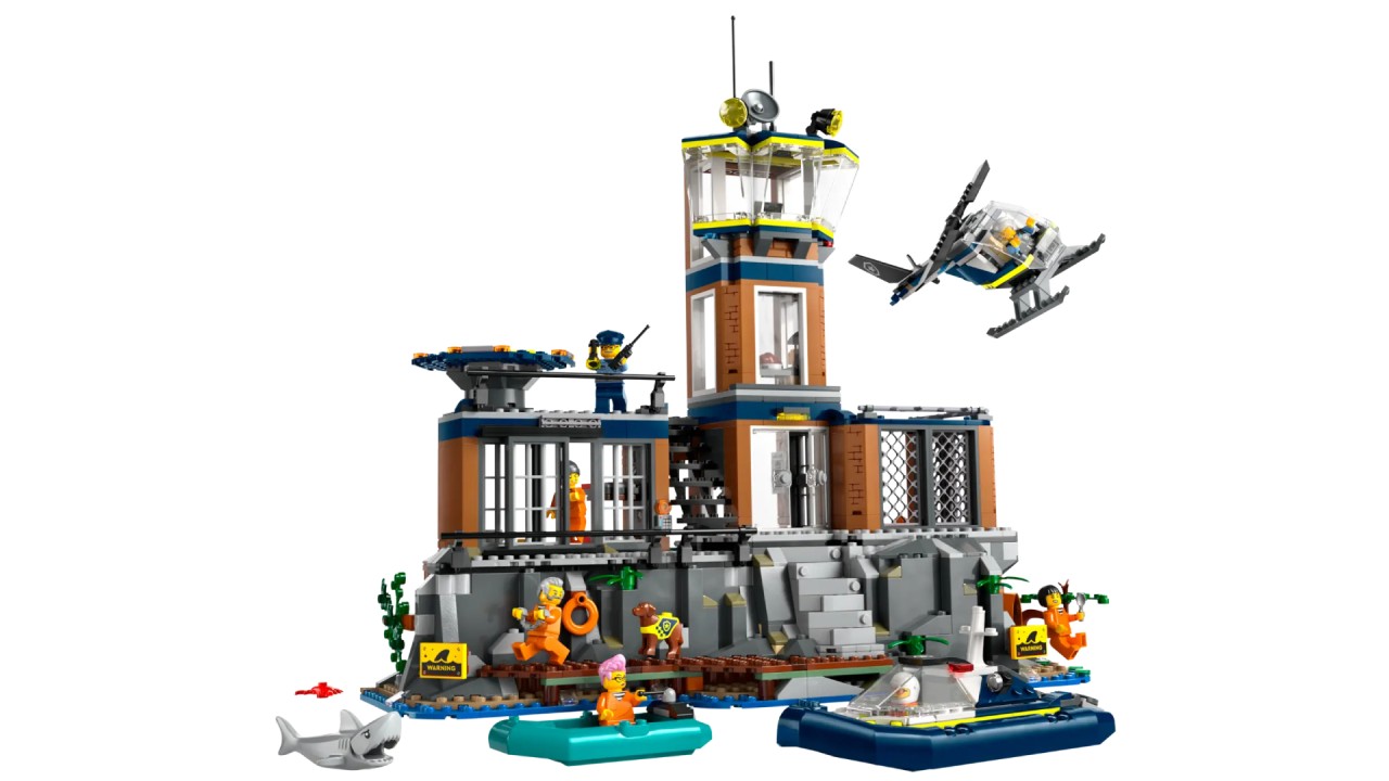 Setul contine o insulă de jucărie închisoare cu o stâncă, o închisoare, o barcă de poliție de jucărie, o barcă de salvare, un elicopter de jucărie, 3 minifigurine de poliție și 4 minifigurine de prizonieri, plus un câine de poliție și un rechin de jucărie.