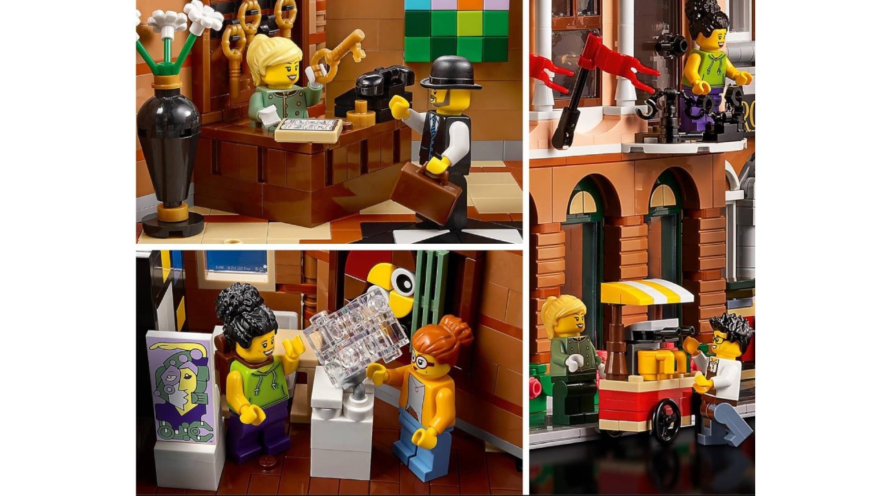 Construiește camerele de oaspeți, apartamentul de lux, holul, terasa și scarile. Explorează toate poveștile din interiorul acestui set, incluzând amuzante omagii aduse altor modele din colecția LEGO Clădiri Modulare.
