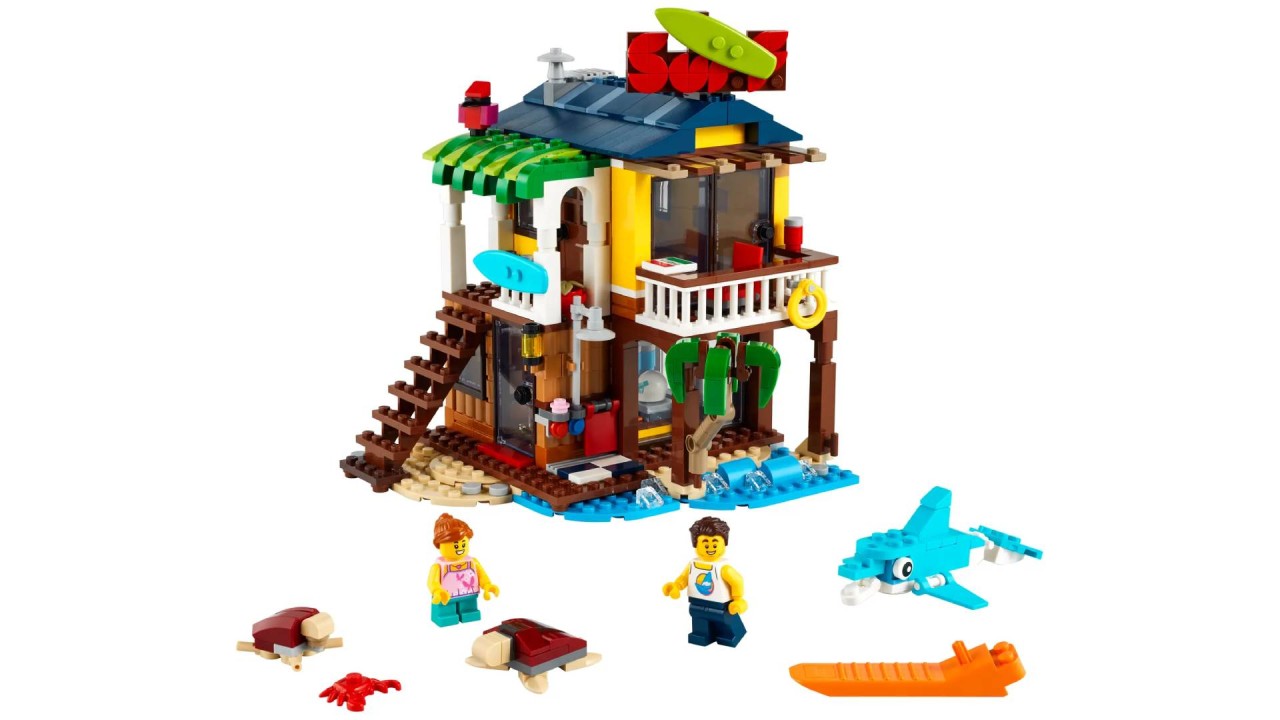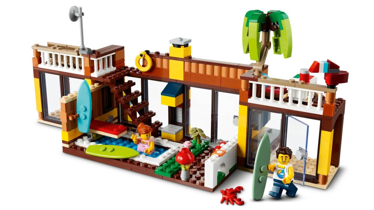 Acest set de construcție va captiva copiii ore întregi și include 3 modele în 1 – o cabană de surf, un far și o casă la piscină. Jucăria farului include o barcă mică și o rază manta, în timp ce căsuța de la piscină este formată din 2 etaje și este dotată cu plăci de surf și o piscină construită din cărămidă.