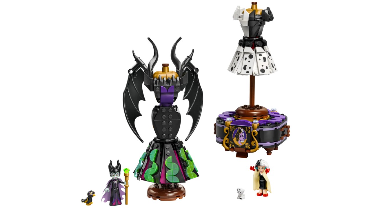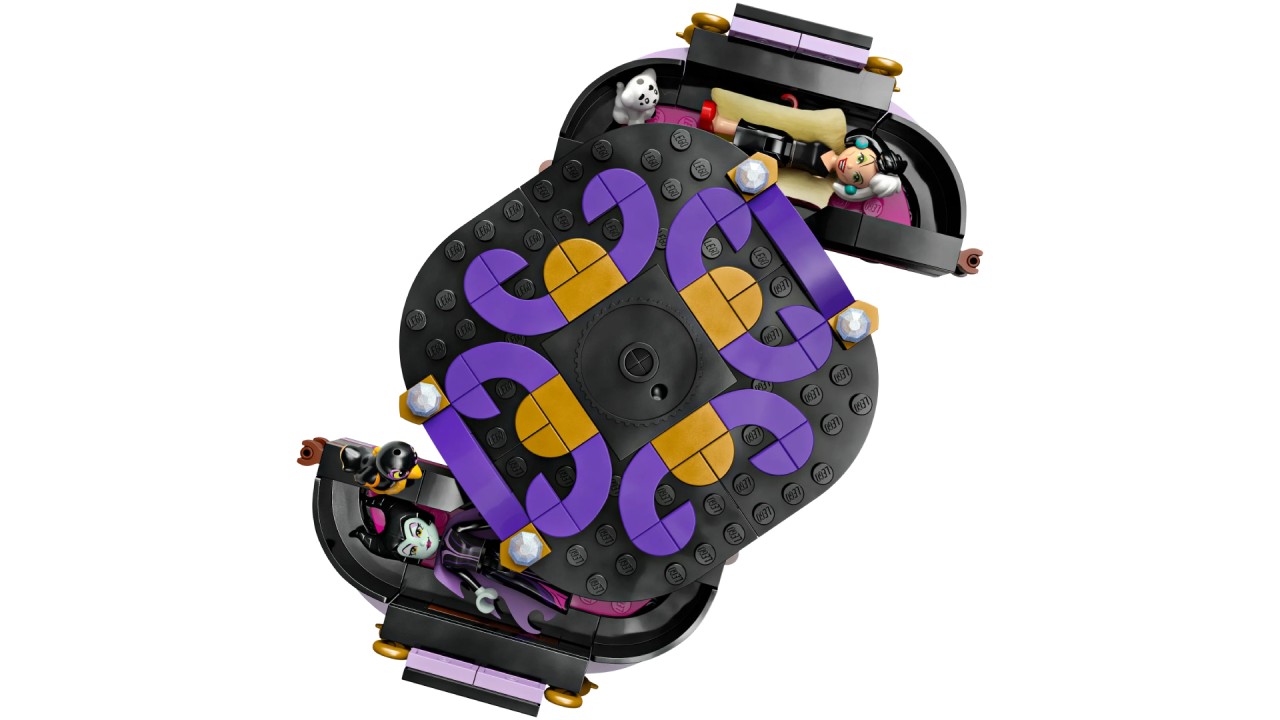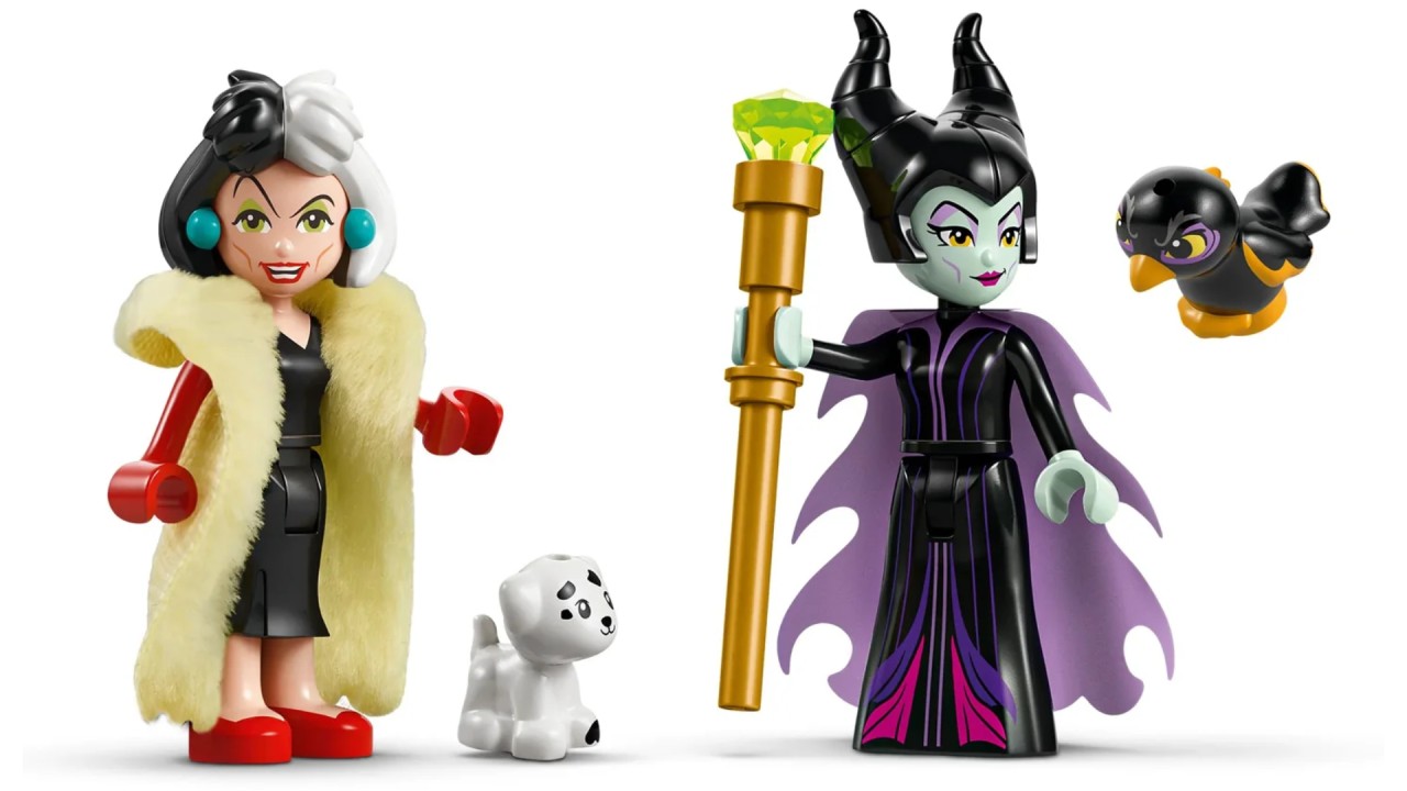 Formidabilul set de construcție conține elemente pentru a crea 3 modele diferite pe stativ, plus plăcuțe de profil ale lui Maleficent și Cruella De Vil.