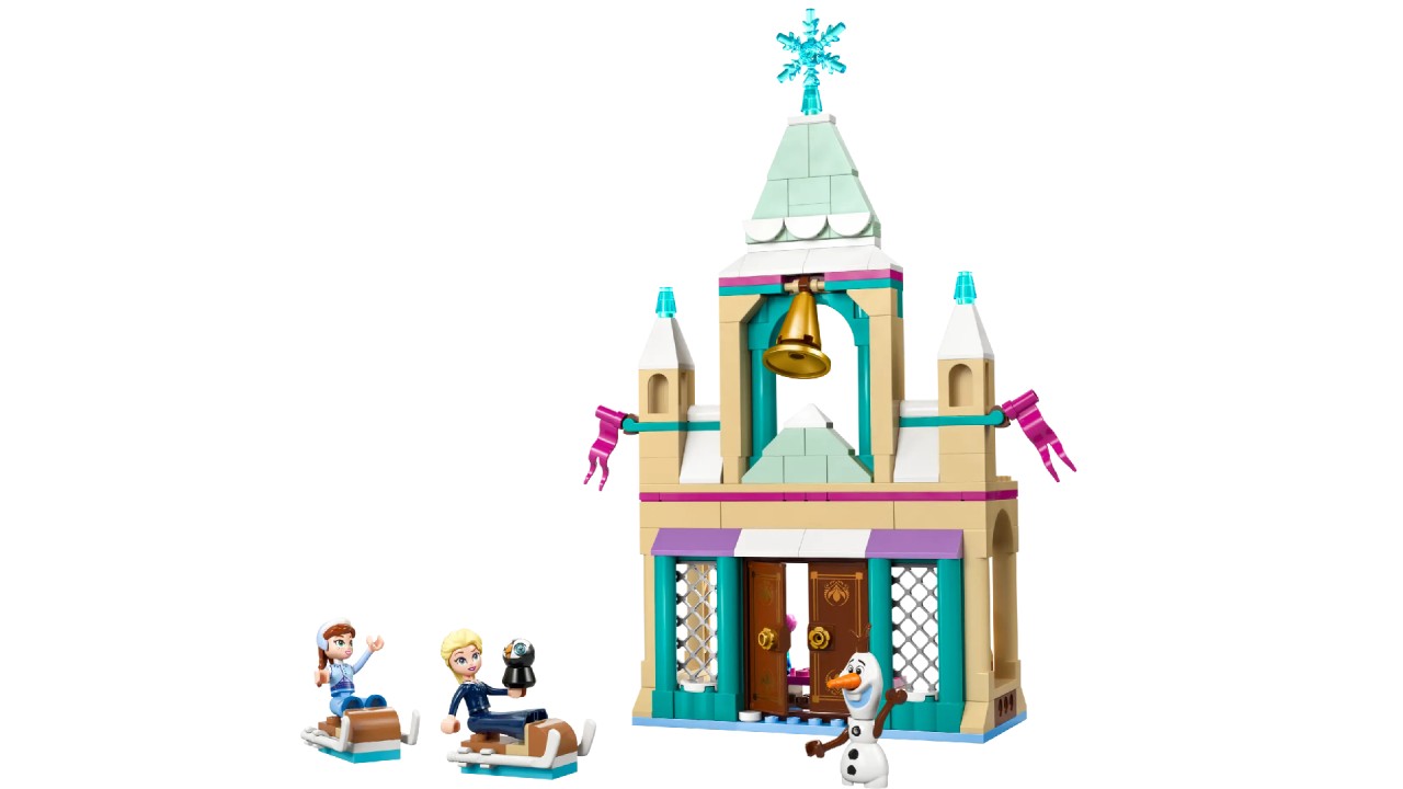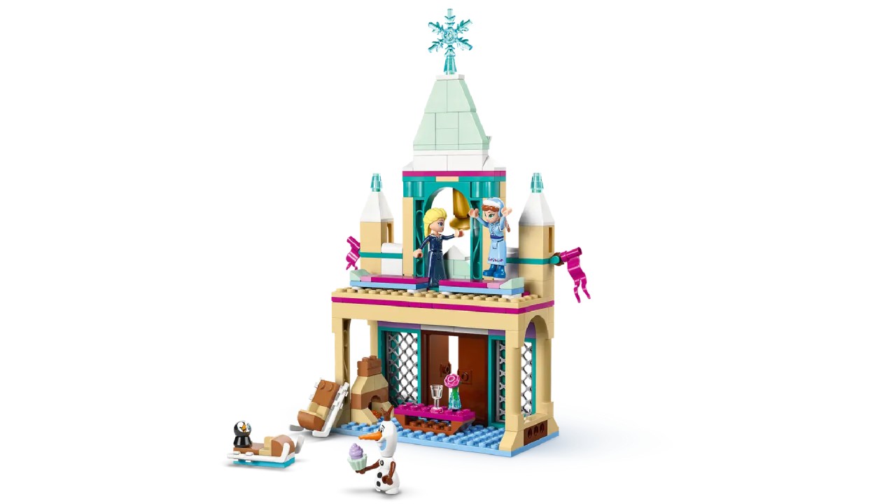 The castle play set also includes the Mini-Doll Lego Disney Elsa and Anna figurines and a Snow Figurine Lego Disney Olaf.