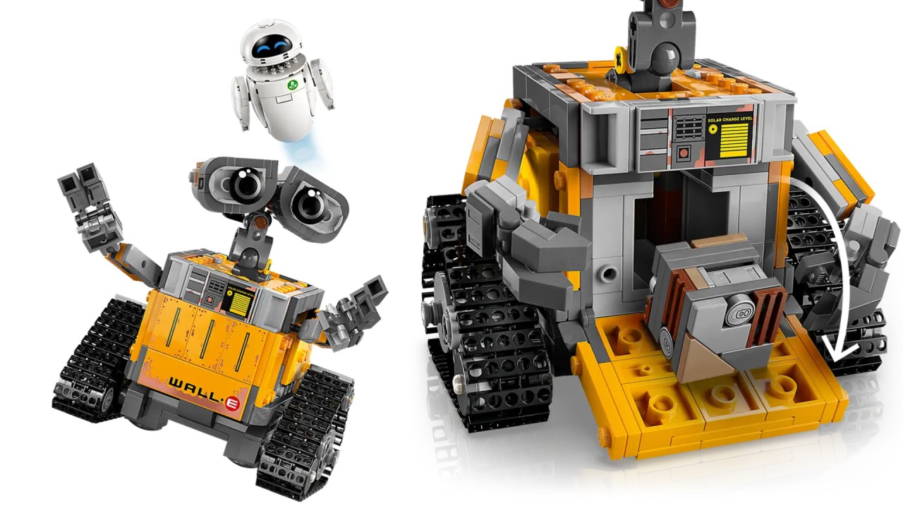Setul construibil conține 4 personaje LEGO Disney: WALL-E, EVE, M-O și Hal, plus detalii atent selectate, inclusiv planta dintr-o cizmă din filmul de animație.