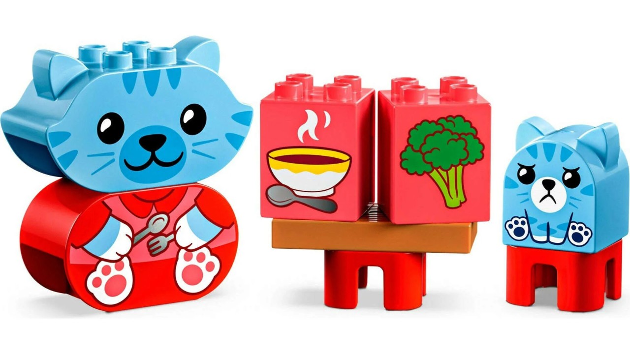 The kitty and baby bear figures come with face bricks with 2 expressions - one side happy, the other sad - allowing toddlers who can't yet talk to easily show what they're feeling.
