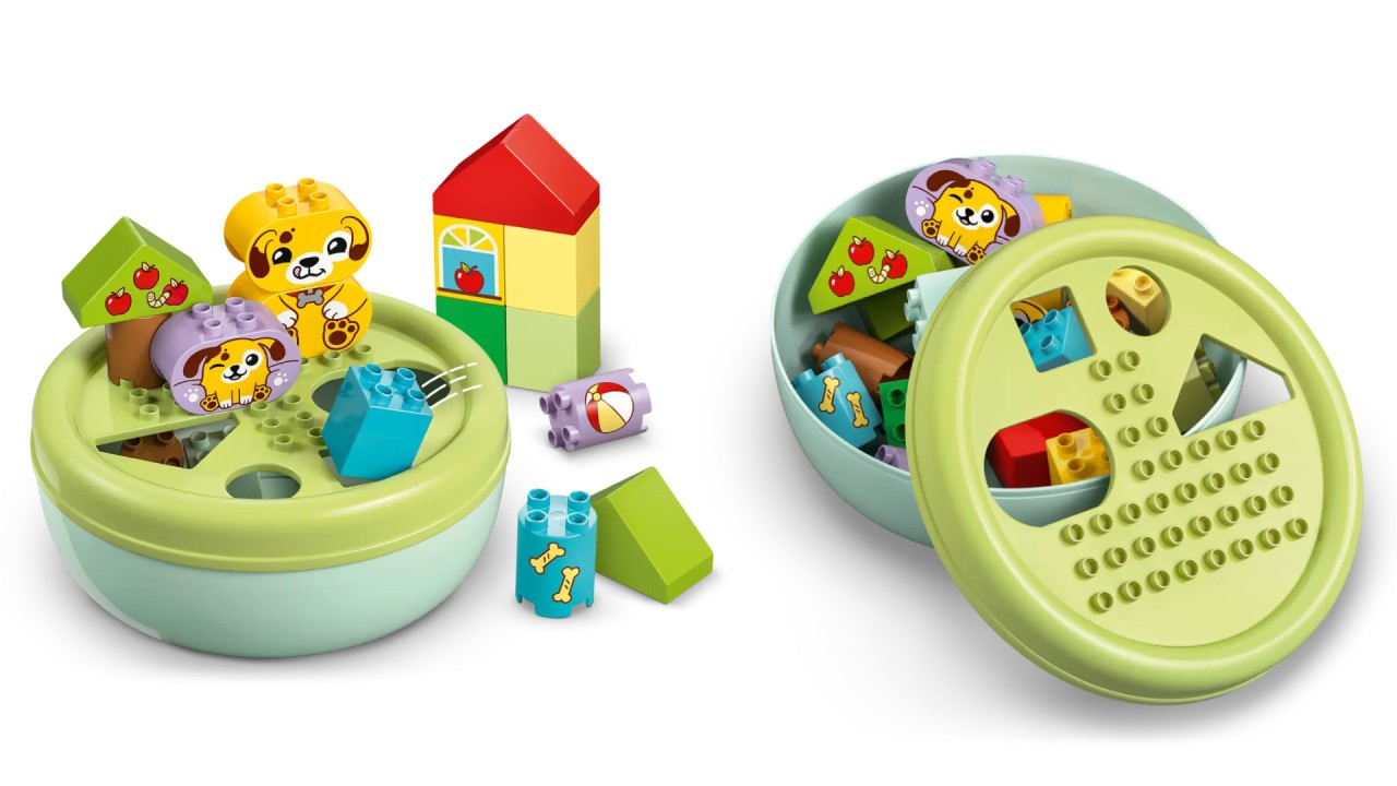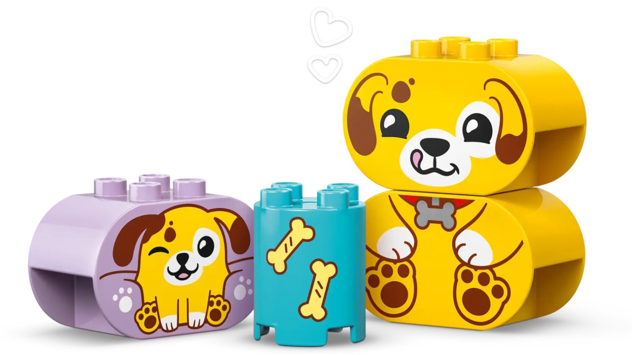 They can then enjoy a creative role play with the cute Lego Duplo toys for dogs, rolling a ball for them and feeding them with a bone.