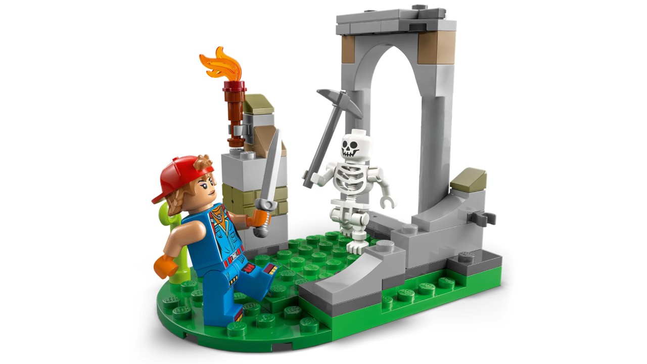 The action is brought to life by the minifigurines Peely, Sparkplug and a skeleton, which are equipped with weapons accessories to encourage the fanciful play.