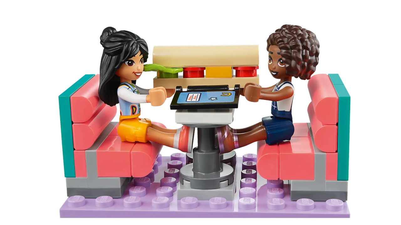 Setul Heartlake City vine cu trei personaje LEGO Friends - Liann, Aliya și Charli - și cu o mulțime de accesorii inspirate de restaurant.
