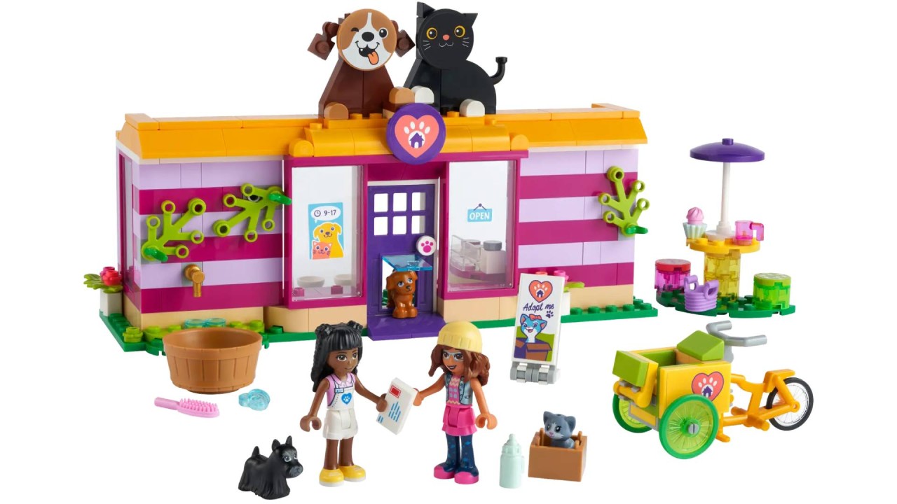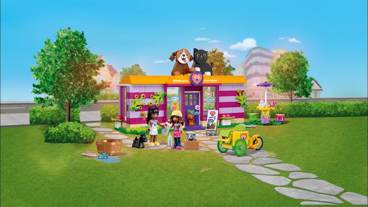 Ajută-i pe copii să ofere animalelor un cămin cu jucăria de colecție LEGO Friends Pet Adoption Café.