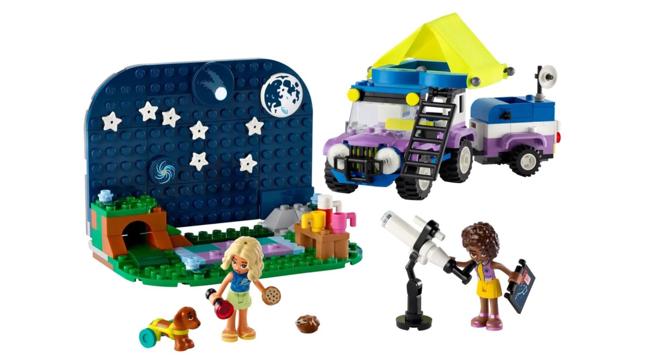 Setul conține un telescop de jucărie construibil, un vehicul 4x4 cu remorcă pentru camping și un cort autopliabil, precum și 2 mini-păpuși, o figurină de câine și o figurină de arici. Îi va inspira pe cei mici să creeze propriile constelații, utilizând planetele și stelele pentru a decora fundalul.