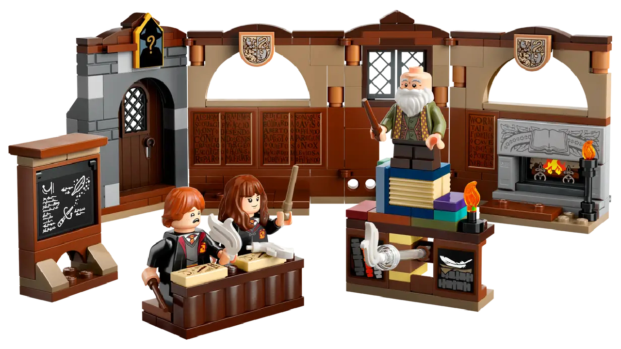 Clasa Hogwarts construibilă se pliază pentru o joacă ușoară și are o funcție de ridicare a penei Wingardium Leviosa, birouri detașabile pentru elevi, o tablă detașabilă cu instrucțiuni pentru vrăji și multe altele.