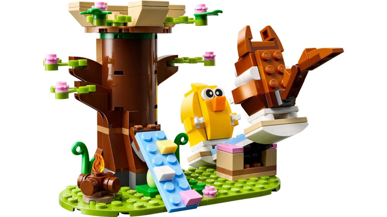 The Spring Animal Playground (40709) Spring set allows boys and girls aged 8 and more to create fun stories with a squirrel toy, a bird toy, a tree house, a campfire, swing and 2 Easter eggs.