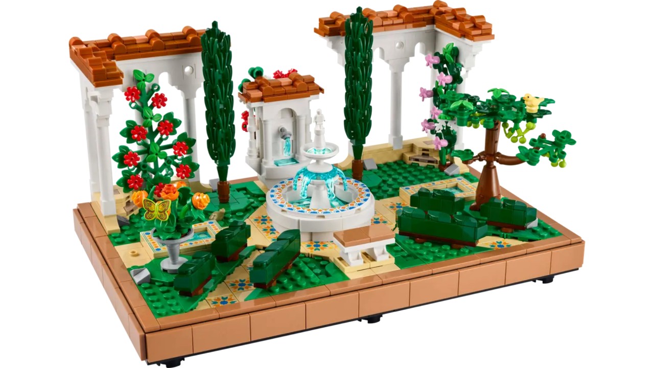 Acest set face parte din colecția LEGO Icons și permite recrearea unui frumos parc cu o fântână centrală, înconjurată de vegetație, bănci și alte elemente decorative.