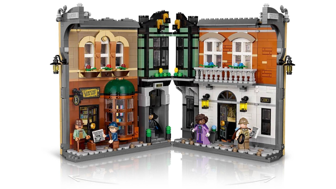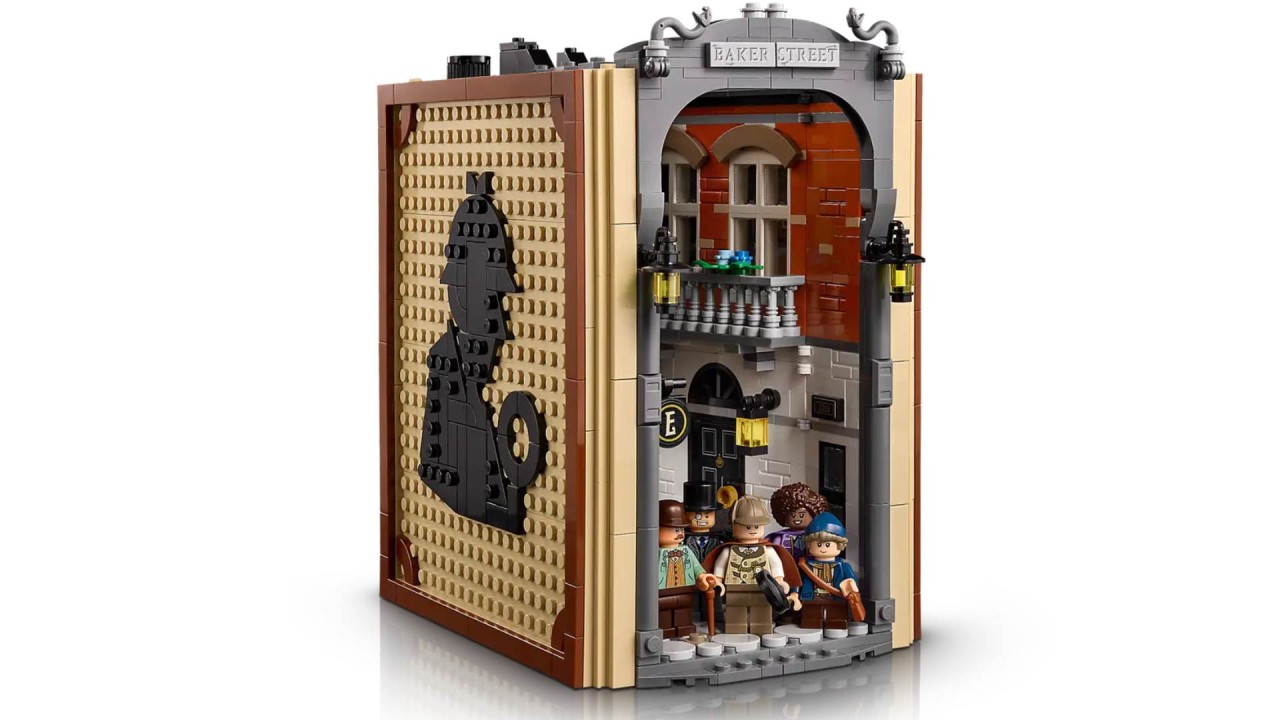 Open it to discover a bookstore with a rotary display case, a shady terrace residence with a sliding entrance door, mysteries and clues and a detailed recreation of Sherlock Holmes's 221b apartment, completely with a comfortable fireplace, an indication sheet and his girlfriend.