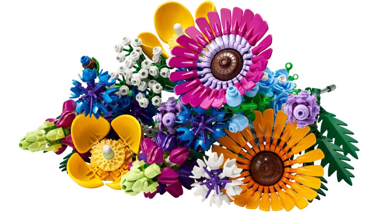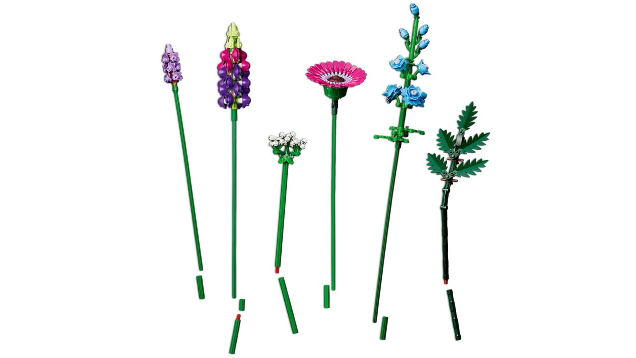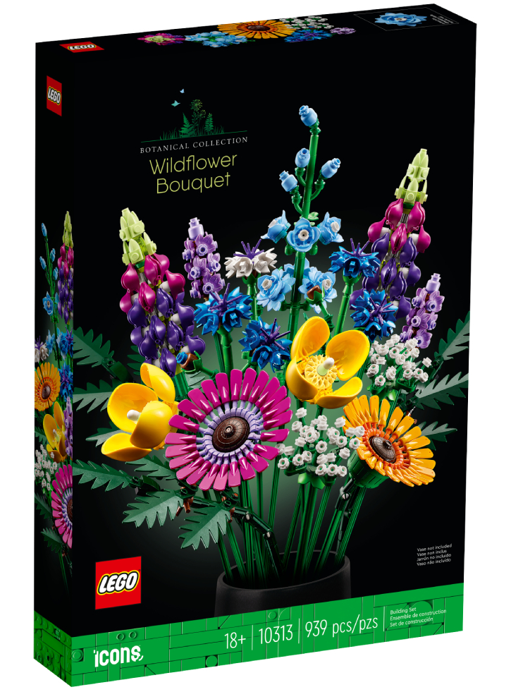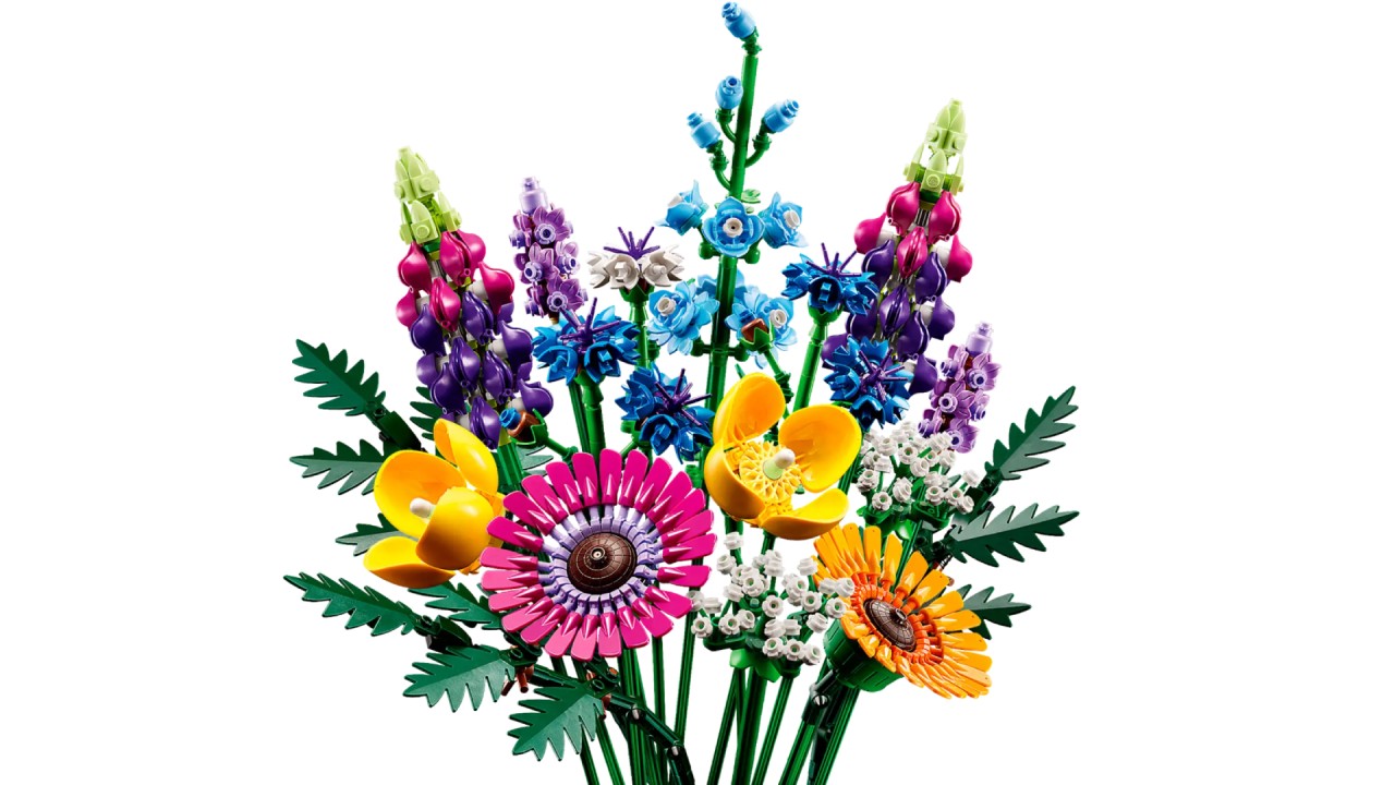 Cu acest buchet de flori artificiale LEGO, adulții pasionați de meșteșuguri pot petrece ore întregi construind și identificând fiecare dintre flori, inspirate de afine, lavandă si altele.