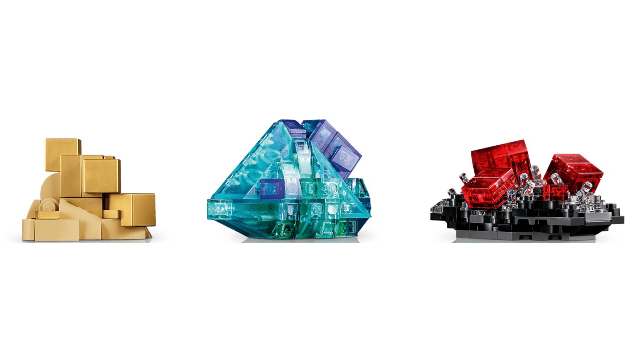 Folosește tehnici inteligente de construcție și cărămizi LEGO transparente pentru a crea modele de pirită aurie, ametist violet, fluorit albastru, turmalină pepene verde, rodocrozit roz-roșiatic și cuarț mandarină.