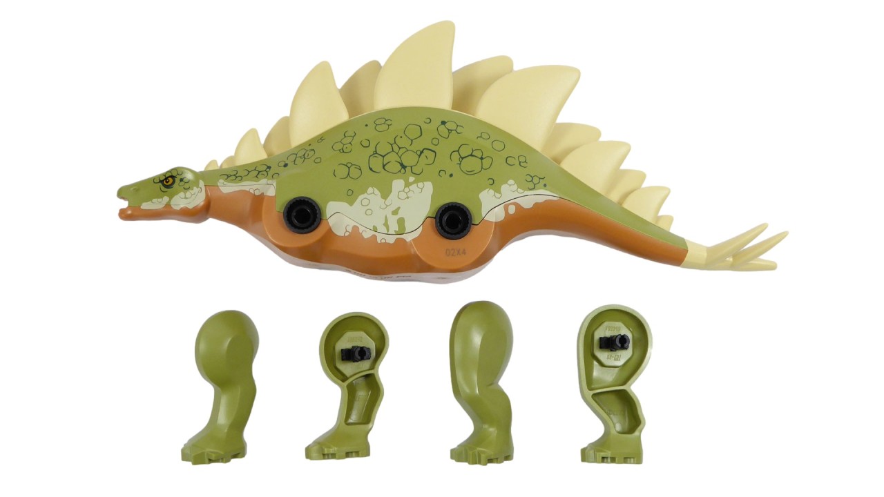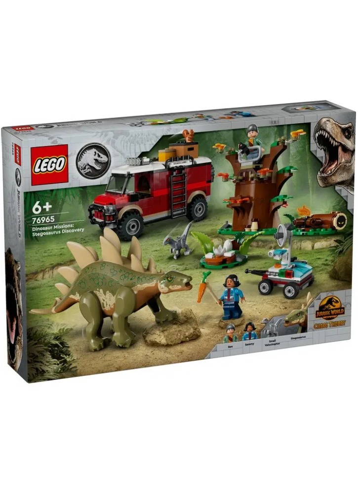 După ce construiesc setul de joacă cu dinozauri LEGO Jurassic World, copiii pot crea povești nesfârșite folosind figurina turnată Stegosaurus cu picioare mobile, o mică figurină Velociraptor și minifigurinele Ben și Sammy.