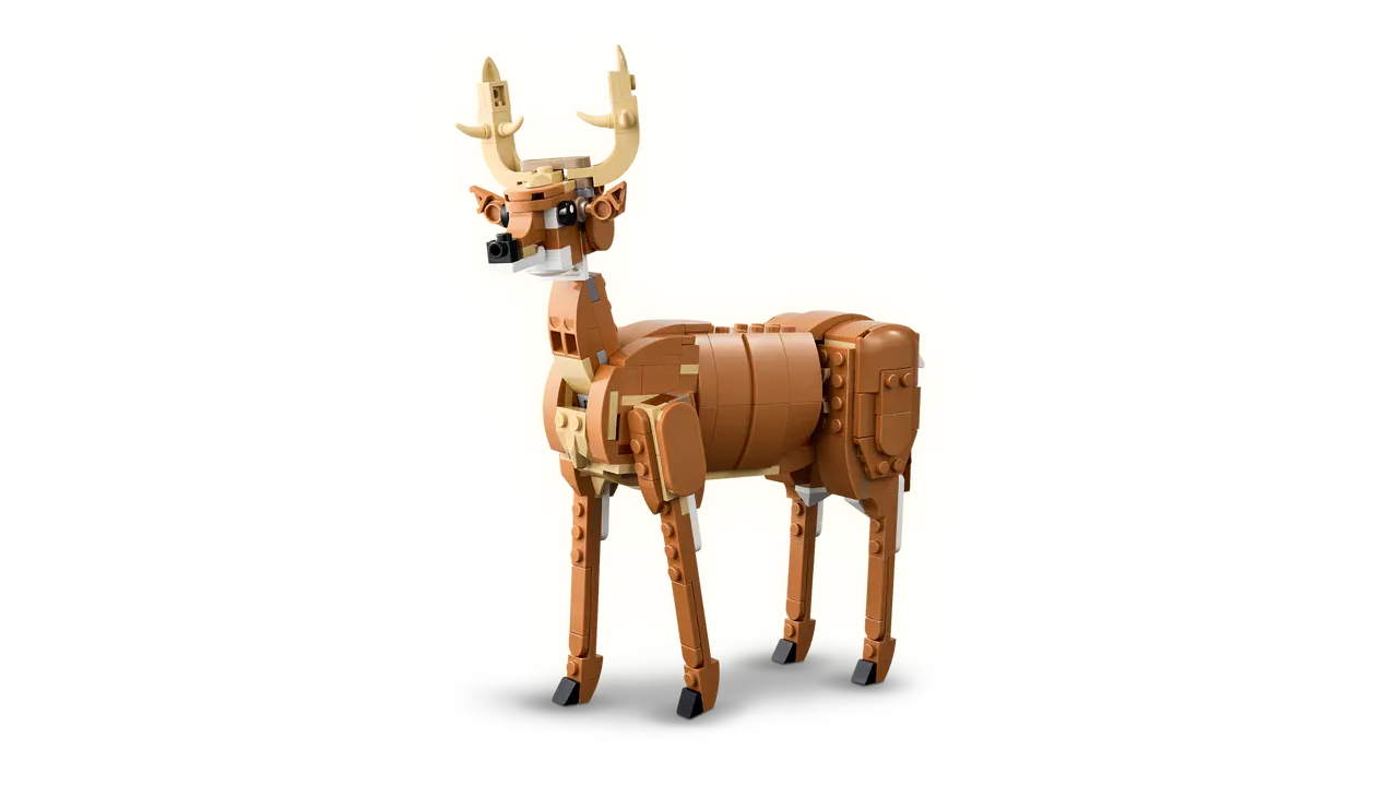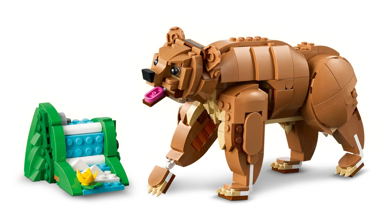 Copiii au la dispoziție 3 opțiuni diferite de construcție cu același set de cărămizi: o jucărie cal LEGO pozabil, o jucărie urs pozabil cu o mică cascadă construită sau o jucărie cerb elegant pozabil.