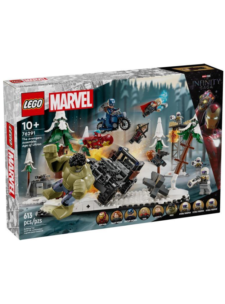 Setul include 5 minifigurine LEGO Marvel Avengers - Hawkeye, Black Widow, Captain America, Iron Man și Thor - o figură mare Hulk LEGO Marvel și 3 minifigurine Hydra Troopers.