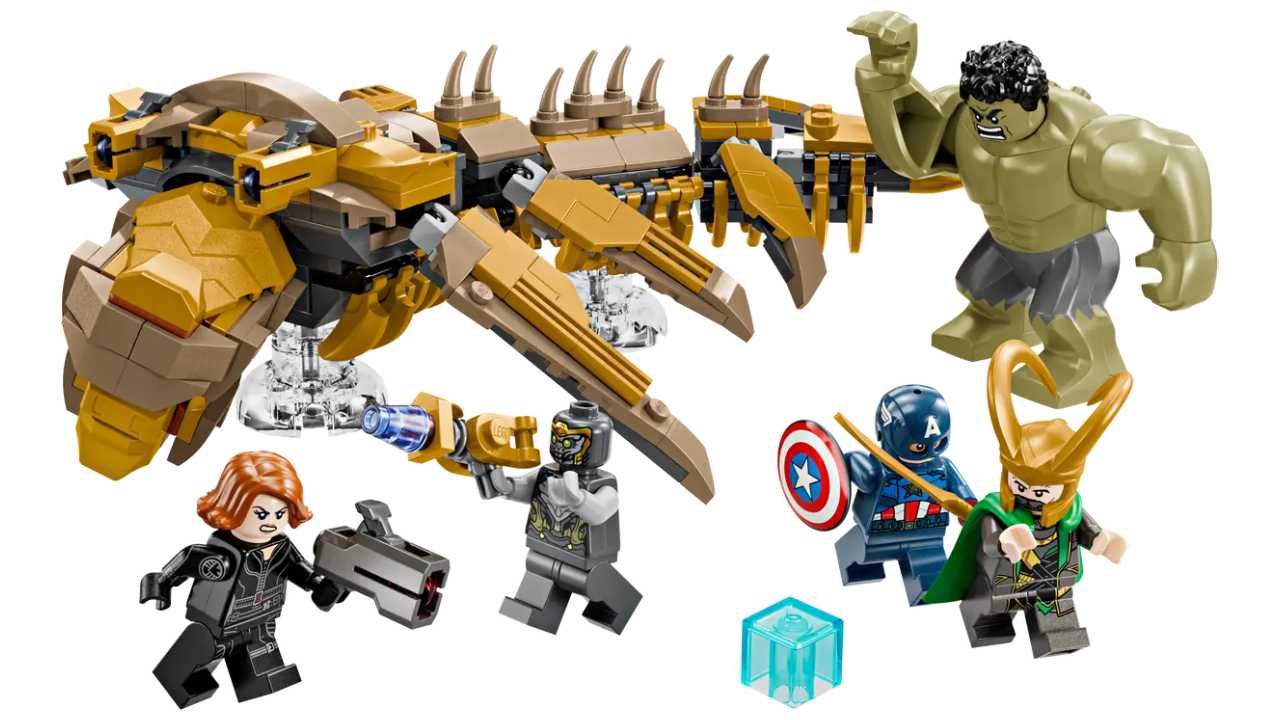 Setul de joacă de colecție LEGO Marvel Răzbunătorii vs. Leviatanul pentru supereroi recreează scena bătăliei finale din filmul Marvel Studios: Răzbunătorii.