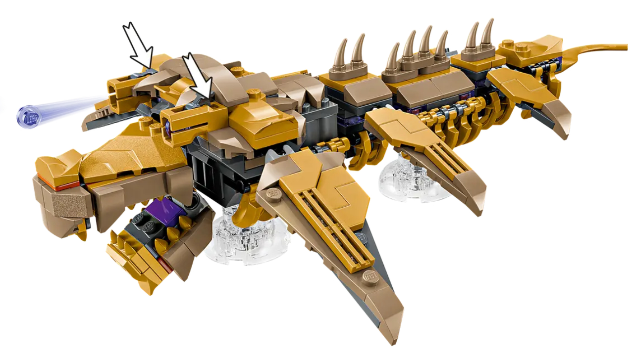 Leviatanul vine cu suporturi transparente care permit minifigurinelor să "zboare" în timpul jocului și fac afișajul și mai impresionant.