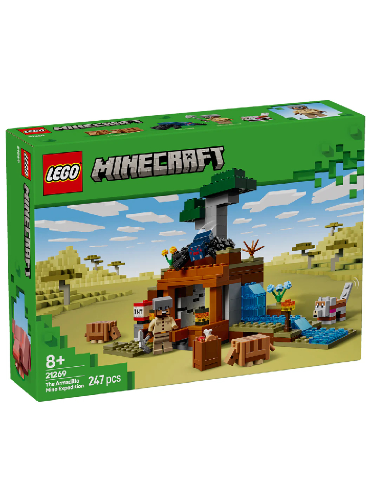 Jucăria de construit LEGO Minecraft Armadillo Mine Expedition (21269) pentru fete și băieți, le permite fanilor Minecraft să pună mâna pe personaje cool și caracteristici distractive din popularul joc video.