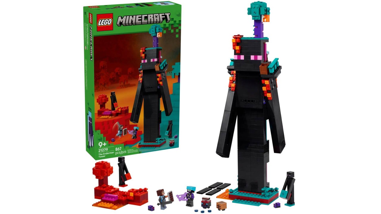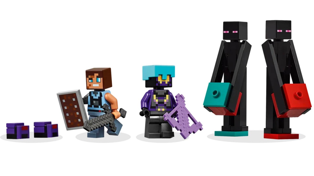Armele includ o arbaletă Minecraft și o sabie și un scut netherite. Modelul turnului Enderman poate fi reconstruit în 2 fortărețe cu coduri de culori, ceea ce este excelent pentru acțiunea PvP (jucător contra jucător).
