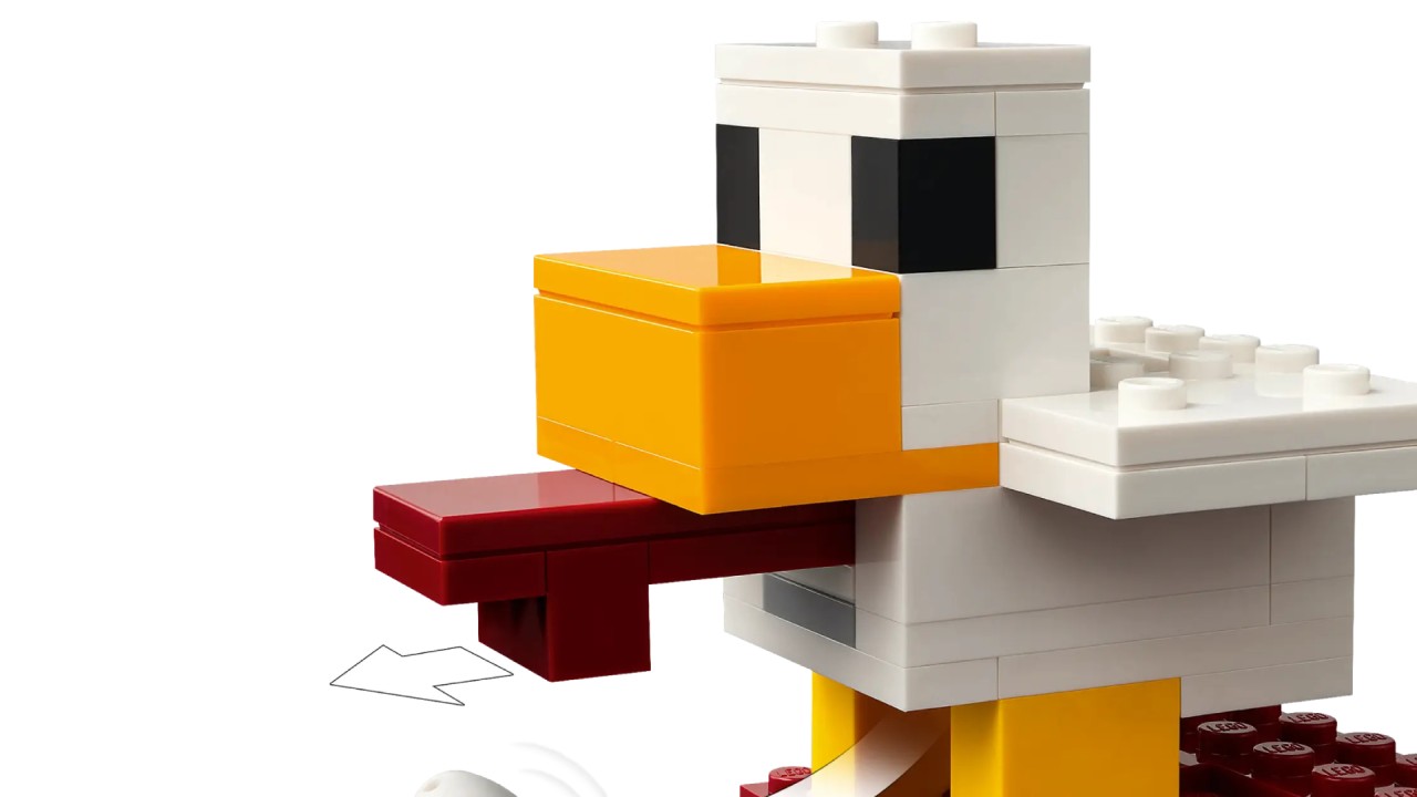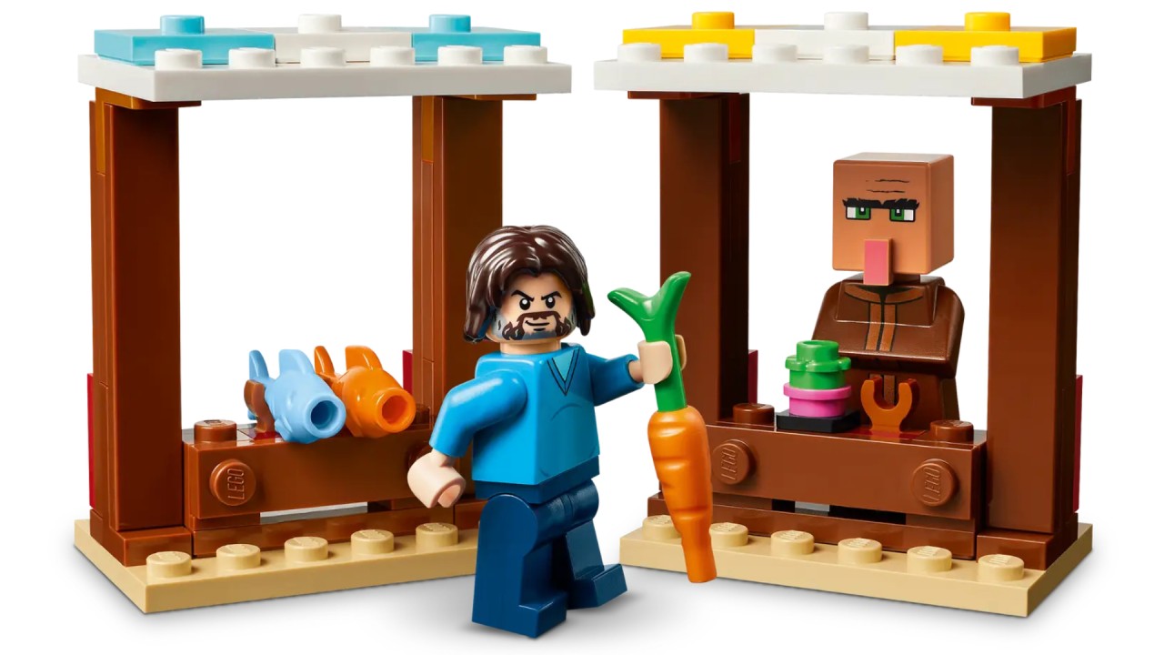 The balloon has space for Piglini and includes a disc launcher. In the village there are market stalls, Steve's fried chicken restaurant, his creative workshop and a fountain, which can be "exploded" by a specially built-in function.