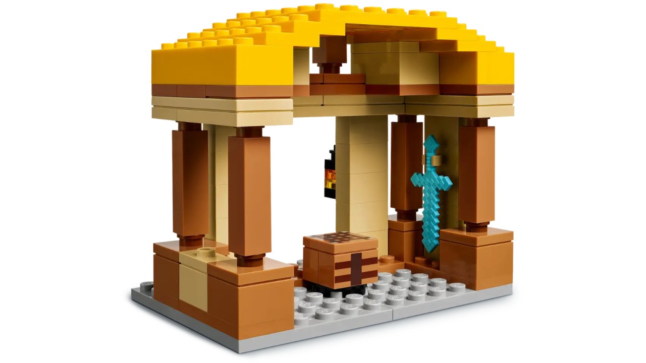 The attack of the village with the Ghast Ball (21273) is a construction set inspired by a scene from the Minecraft movie.