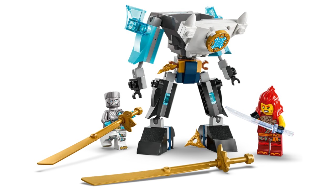 The Ninja Lego Ninjago Zane's Battle Suuit Mech (71827) toy allows children to stage the captivating action of season 3 of the TV Ninjago Dragons Rising.