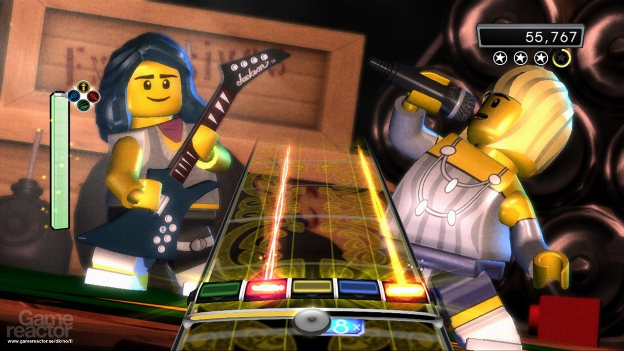 Pe măsură ce jucătorii finalizează cu succes cântece și provocări rock, pot colecta cercei LEGO, pot debloca conținut suplimentar și pot colecta vehicule uimitoare, care pot duce trupa lor de la concerte locale în cluburi rock la spectacole epice pe stadioane și chiar în decoruri fantastice pe Pământ și dincolo de el.