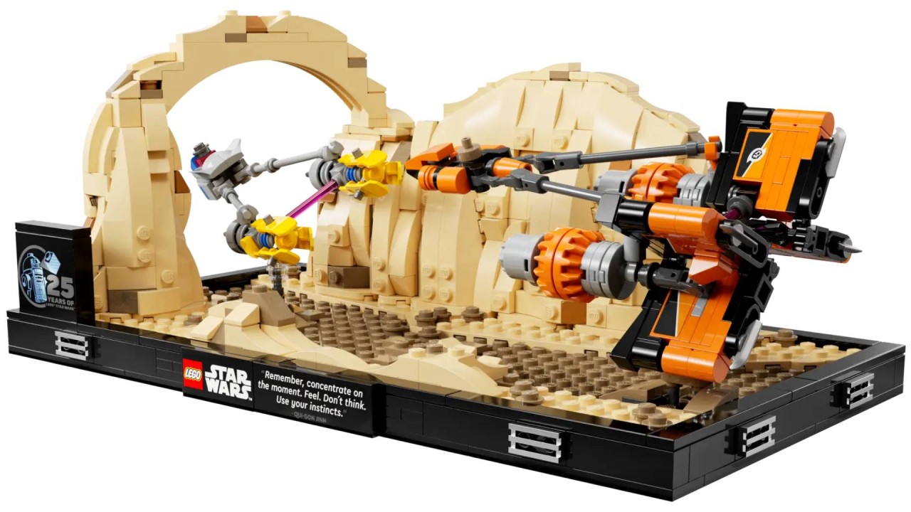 Congelați un moment din emoționantul Podrace Mos Espa cu acest set unic de machete LEGO Star Wars Diorama (75380) destinat pasionaților adulți.