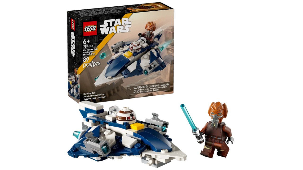 Acest set de construcție fantastic include, de asemenea, o minifigurină LEGO Plo Koon cu o sabie laser albastră care se prinde de partea inferioară a Microfighter-ului.