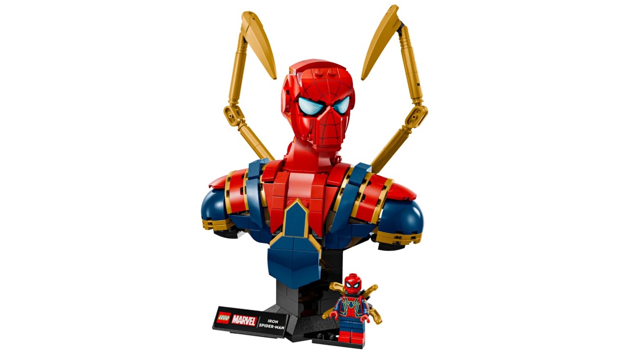 Bustul Iron Spider-Man este un set de colecție pentru constructori experimentați și adulți pasionați de supereroi.