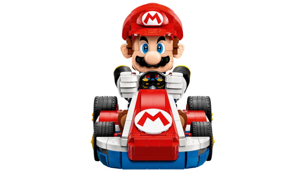 A delightful collection gamer gift for adults, this Nintendo construction set presents a Mario Figure with head and posable arms, placed at the steering wheel of the most iconic vehicle Mario Kart.