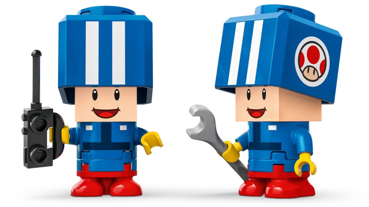 A fantastic gift idea with Nintendo characters for boys, girls and gamers 8 years old and over, the set includes 2 Blue Toad toy figurines in blue Pit Crew uniform, plus a functional car lift, a standard tire choice or Standard blue tires and tools.
