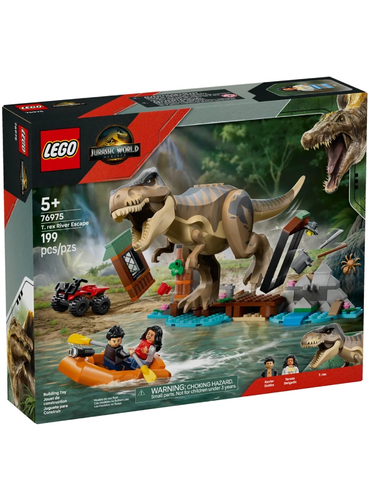 Setul LEGO® Jurassic World - Evadarea pe Râu a lui T. rex (76975) îi invită pe cei mici într-o aventură palpitantă, inspirată din universul filmului Jurassic World: Rebirth.